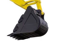 E6150F铲斗使用横销五斗齿结构,并在铲斗两侧配备了两组侧刃板,铲斗外侧和底部增加耐磨板,有效延长铲斗使用寿命。